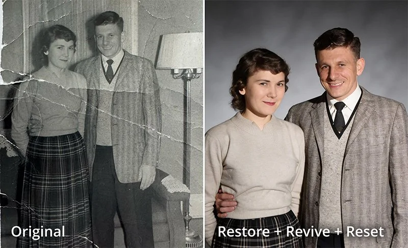 Examples of the “hidden gems” in a client's archive that are ripe for restoration—from faded Legacy Milestones to Distracted Memories where a perfect expression is trapped in a clinical setting